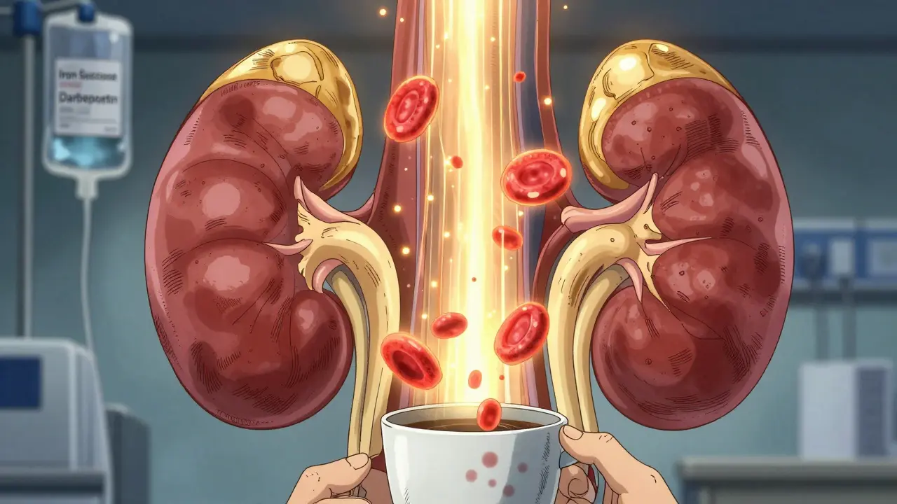 When your kidneys start to fail, they don’t just stop filtering waste-they also stop making a hormone your body needs to make red blood cells. That’s where anemia in kidney disease comes in. It’s not just feeling tired. It’s struggling to walk up stairs, feeling dizzy when you stand, or noticing your lips and nails look pale. For people with chronic kidney disease (CKD), this isn’t normal aging-it’s a medical problem that needs specific treatment. And the two biggest tools doctors use? Erythropoietin and iron.