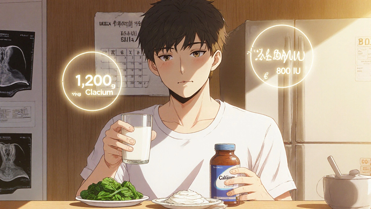The American College of Rheumatology (ACR) recommends 1,000 to 1,200 mg of calcium daily and 600 to 800 IU of vitamin D for anyone starting long-term steroid therapy (3 months or more at 2.5 mg prednisone or higher). If your vitamin D level is below 30 ng/mL-which is common-you should bump it up to 800-1,000 IU daily.